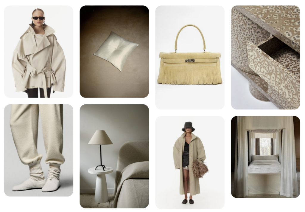 Seasonal color palettes move from runway to home, where neutrals and deeper tones are layered to create warmth and balance. Materials like velours, linen, leather, and bouclé are shared across both worlds, valued for their texture and comfort. Even silhouettes align, the return of curves in fashion is reflected in softer, rounded furniture and interiors that feel more inviting.